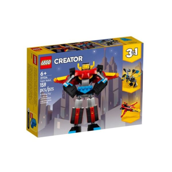 • LEGO fans aged 6 and up will be thrilled to play out all-action futuristic stories with the Creator 3in1 Super Robot (31124) set. This impressive robot features a posable head, legs, feet, arms, and hands, along with a set of wings on the back, providing everything kids need to enjoy gripping role-play fun.