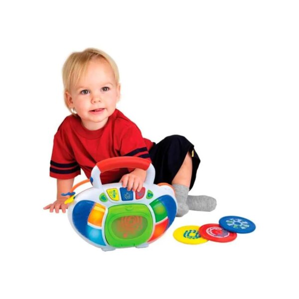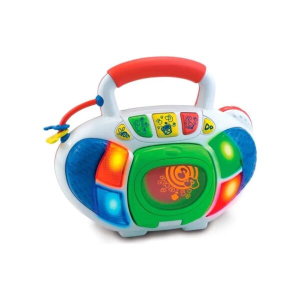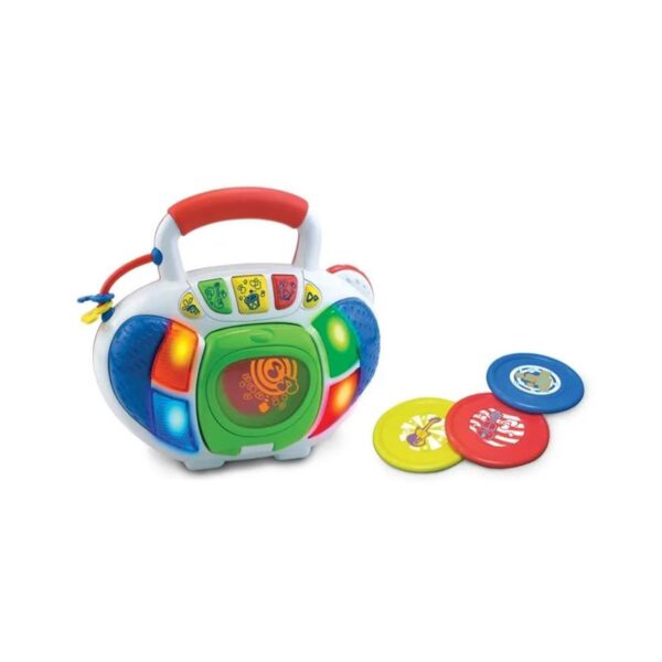 - The Little Learner My First CD Player is an interactive toy that introduces children to music and sound through playful engagement. Resembling a real CD player, it includes three melody discs with various music genres. With colorful buttons and funny sounds, it promotes imaginative play and auditory stimulation, fostering sensory development in young children.