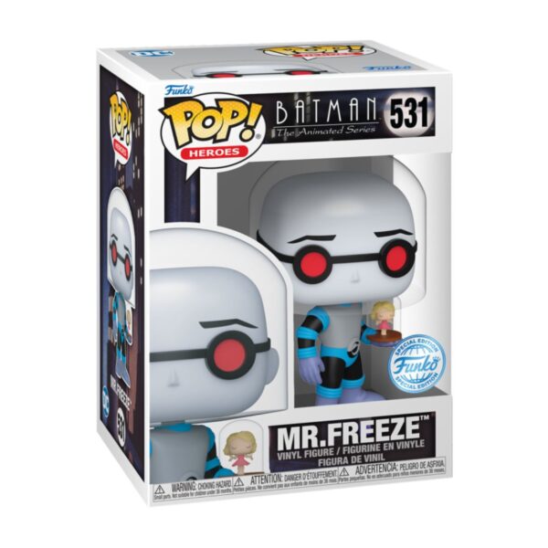 - Step into the captivating world of Batman: The Animated Series with this exclusive Mr. Freeze Funko Pop! figurine. This collectible perfectly captures the icy demeanor of Gotham’s chilling villain, Mr. Freeze, in incredible detail. Donning his signature blue and grey suit, he holds a snow globe containing the delicate figure of Nora, his beloved wife—a poignant reminder of his tragic backstory. With glowing red eyes and a commanding stance, this figurine is a striking addition to any Batman or DC Comics collection. At approximately 9.5 cm tall, it’s the ideal size for display on a shelf or desk, bringing a touch of Gotham’s frozen intrigue to your space.